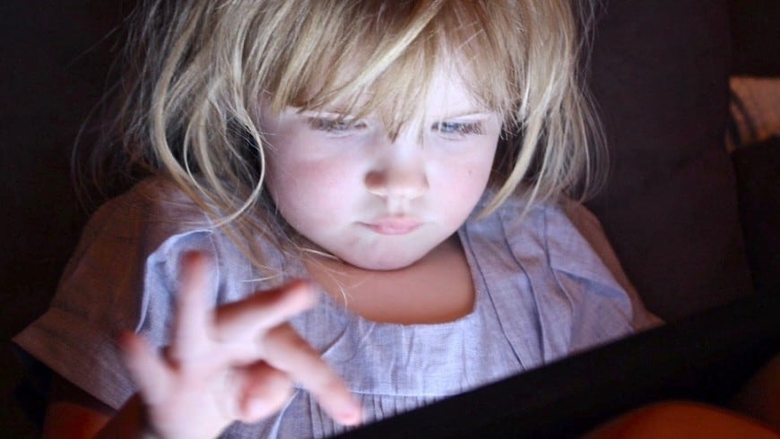 child playing on tablet