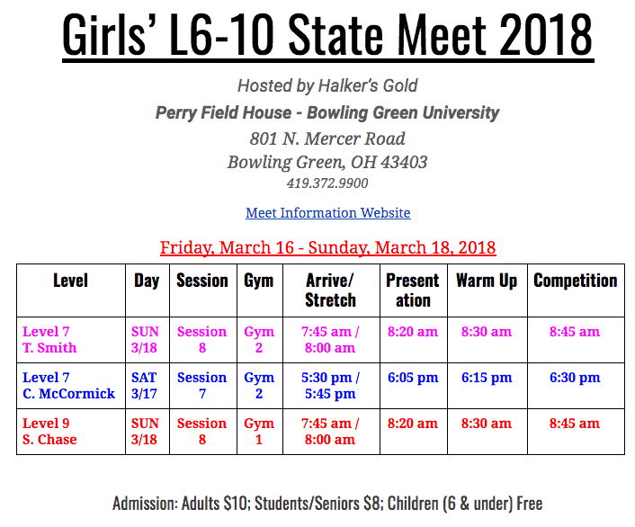 Girls’ Team: The Level 6-10 State meet schedule is available.