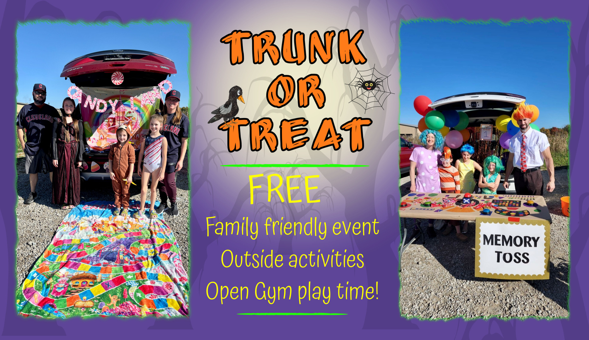 Trunk or Treat is a FREE family event, but requires pre-registration so we can adequately staff Open Gym with our awesome coaches!
